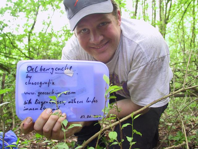 Hallo! Bin heute Mittag (bei Regen) mit dem Oeffentlichen Personen Nahverkehr nach Bollschweil gefahren um den Oelberg Cache zu heben. In wunderschoener Umgebung bin ich ewig lange am Hang rumgekraxelt, nur um zu sehen, das ich gut 200m vom eigentlichen Cache weg war. Die Handschuhe waren ein super Tipp. Am meisten zu kämpfen hatte ich mit feuchtem Laub. Das war so rutschig, das auch ordentliche Wanderschuhe nicht mehr geholfen haben. Am Cache selber war wohl wegen des Nassen Blaetterdaches des frisch begruehnten Waldes der GPS-Empfang ziemlich miess! Dafuer umschwirren einen jede Menge Fliegen und Waldbluemchen bluehen ueberall! 5 Stunden nach Aufbruch war ich dann auch wieder vor meiner Haustuer in Freiburg; inzwischen war meine Hose allerdings nicht mehr ganz so sauber wie bei der Abreise .In: rotes Notizbuch (neues Logbuch) Waschmitteltabs Out: 500 Lire Die ZipLock Beutel, in die die Tupperdose eingewickelt sind, haben beide grosse Loecher, von daher waehre es nicht ungeschickt, wenn demnaechst mal jemand eine Plastiktuete mitbringen koennte. Danke fuer diesen Anspruchsvollen Cache, den man bestimmt nicht auf Anhieb findet. Fuer alle die sich ins Gebuesch gewagt haben, lohnt es sich nach Zecken zu suchen, ich hab naemlich schon zwei gefunden. i.A. der schokokekse ben