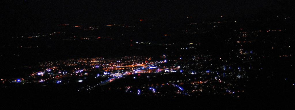 Am frühen Abend zogen wir los, um noch ein wenig Sonne zu erwischen. Nach diversen Irrwegen kamen wir dann auf unserem Privatparkplatz an und hofften, dass die analogen GPS-Koordinaten auf der Papierkarte uns den richtigen Weg zeigten. Nach anfänglichen Bedenken stellte sich dann heraus, dass wir den passenden Rundweg erwischt hatten.  Zum Schluss noch ein wenig querfeldein den Berg hinauf, dann war's fast geschafft. Fast, denn die Suche in der Dämmerung mit ungenauem GPS-Empfang zog sich doch noch eine ganze Weile hin. Als es dann schön Dunkel war, hatten wir schliesslich doch noch Erfolg und konnten wenigstens das Blitzlicht geniessen . Vielen Dank für die schöne Aussicht auf dem Heimweg! Goff-goff, die Schokokekse