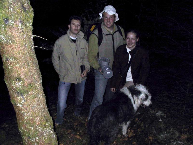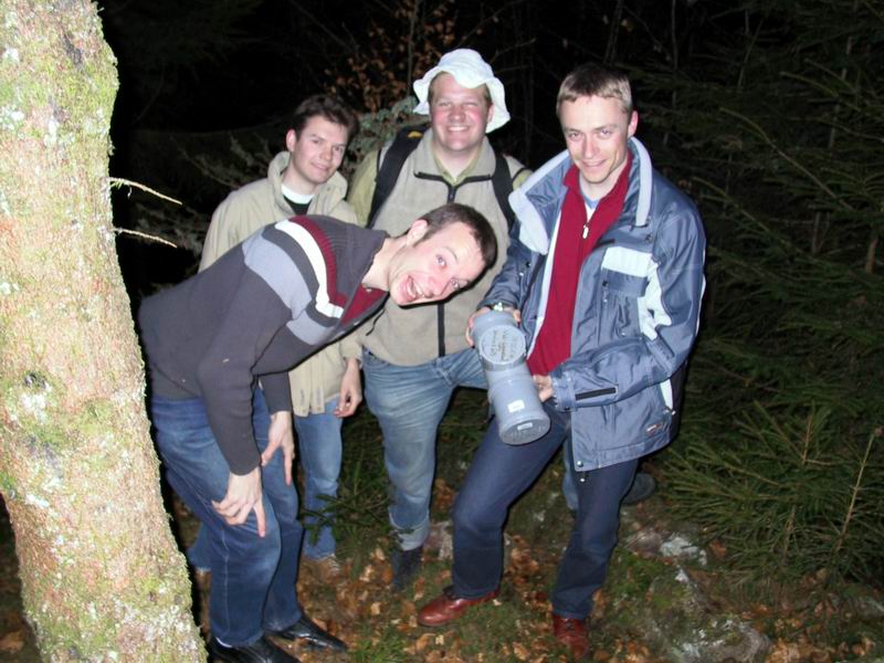 We reached the parking lot at dawn and found the cache with the last second of sunlight. GPS Signal was low at the site of the cache so we finally used the picture to match the trees with the surroundings. The hint would be useful if there weren't so many of these objects, described in the hint. So our hint is to take a (good) copy of the pictures to find the cache.